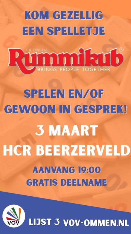 Kom gezellig een spelletje Rummikub spelen en/of gewoon in gesprek.