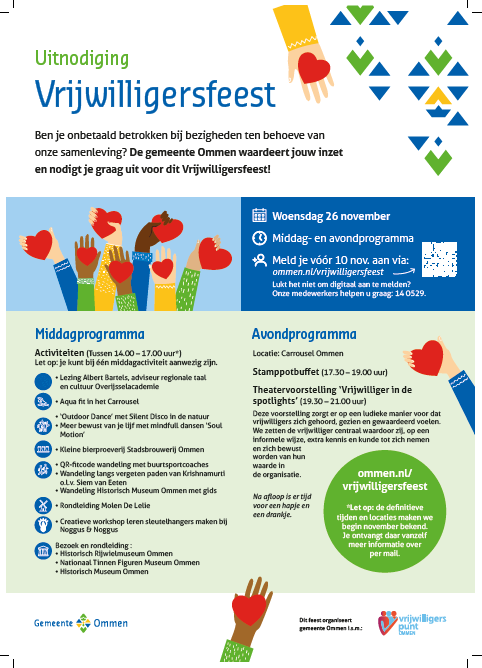 De gemeente Ommen waardeert jouw inzet en nodigt je graag uit voor dit Vrijwilligersfeest!
