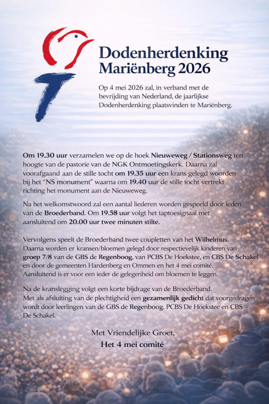 Daarna zal voorafgaand aan de stille tocht om 19.35 uur een